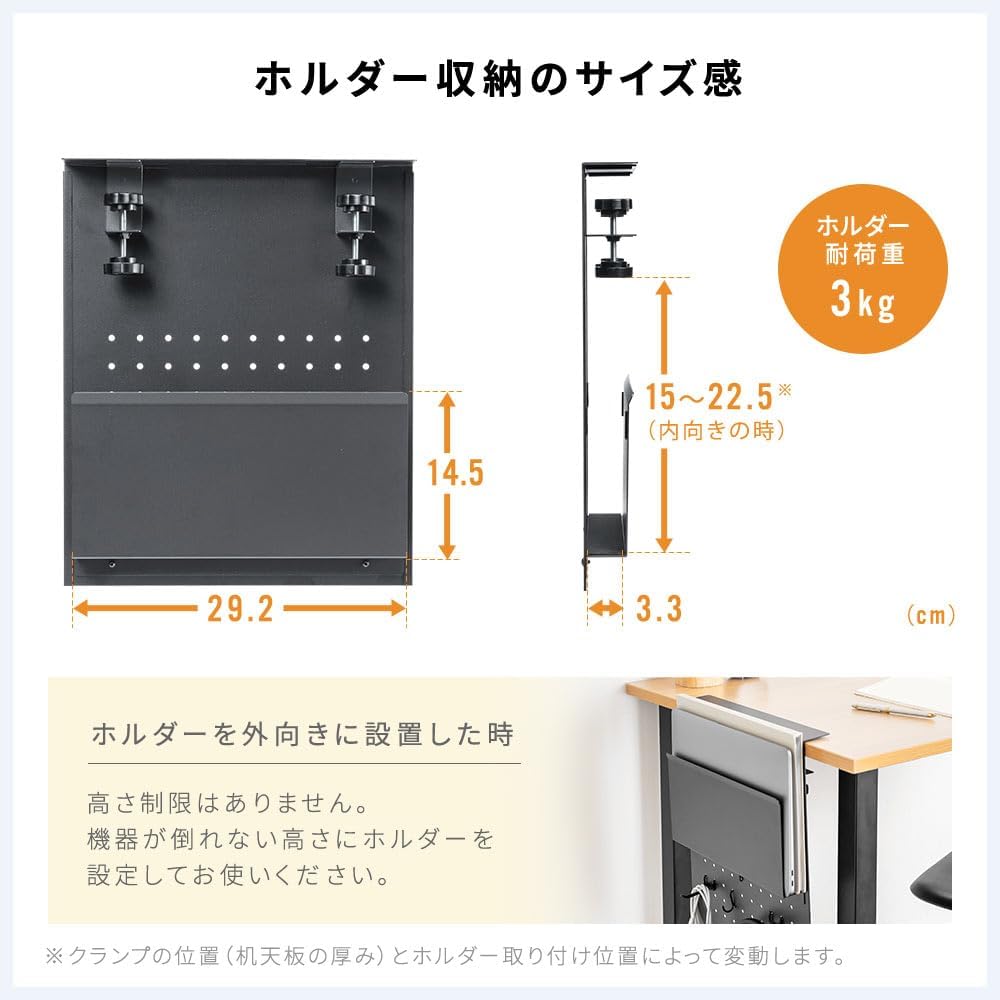 ホルダー クランプ式 後付け 拡張 耐荷重7kg スチール製 ノートPC タブレット
