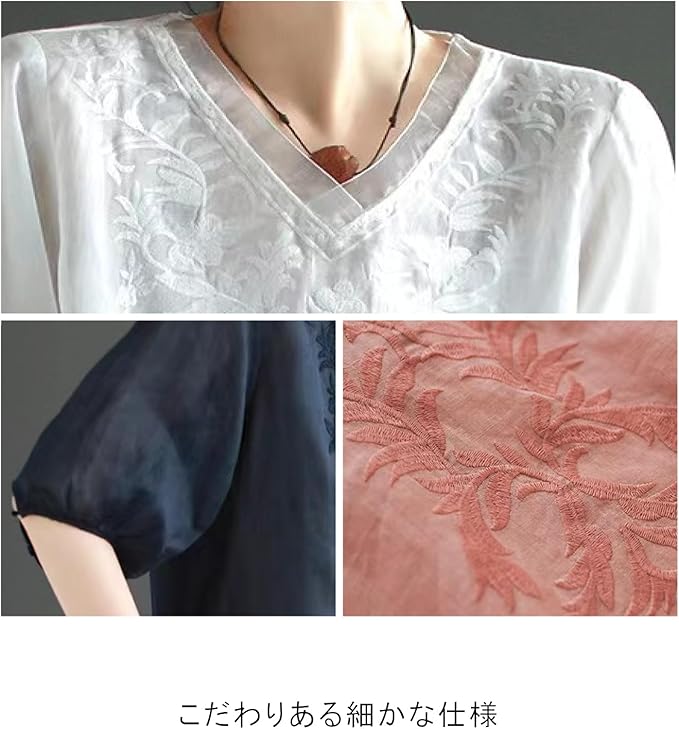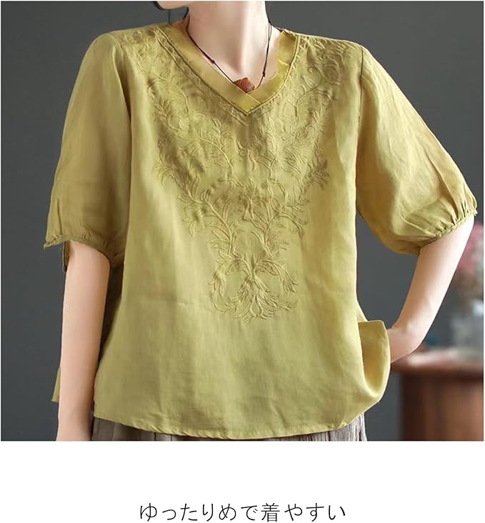 プルオーバー ブラウス 涼しい 半袖 夏 レディース