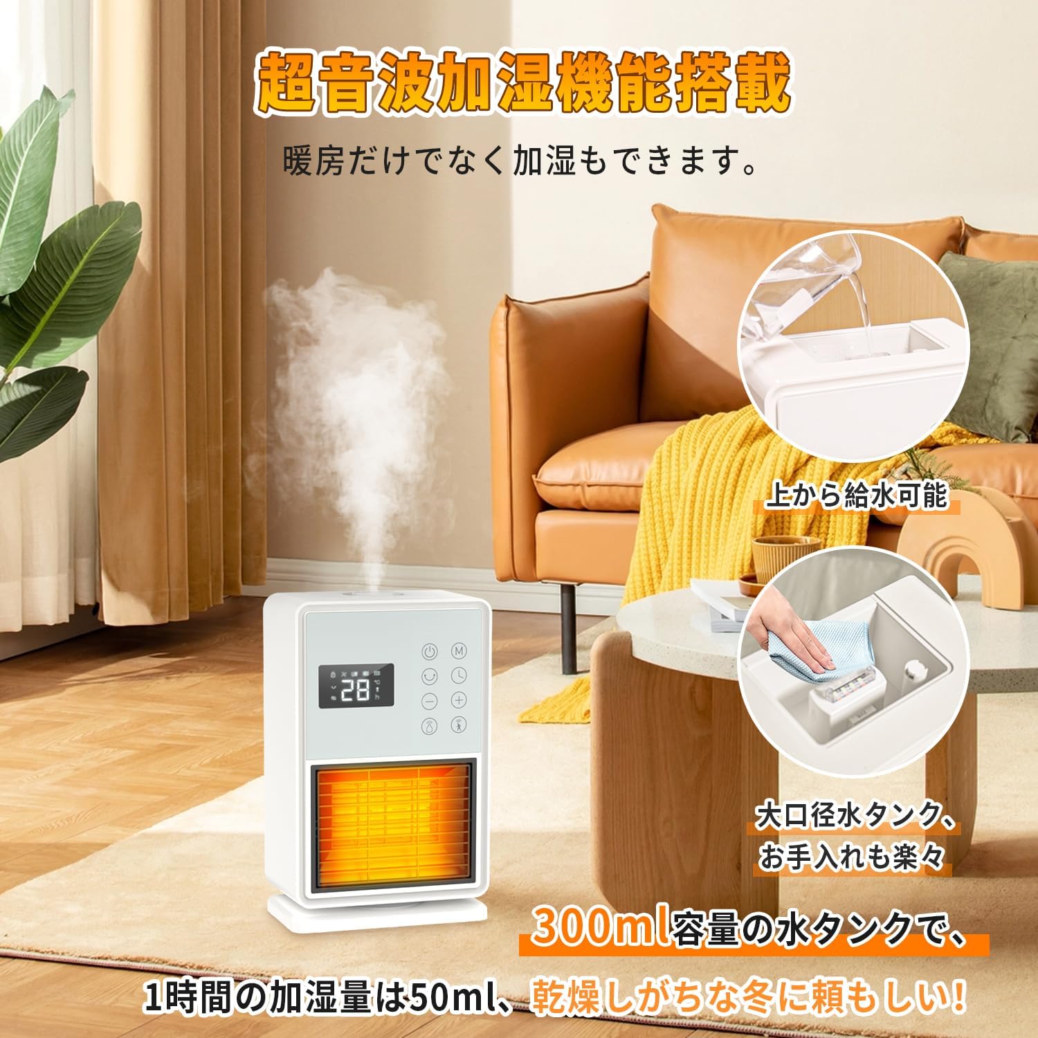 暖房・加湿・扇風機・ナイトライト 一台四役