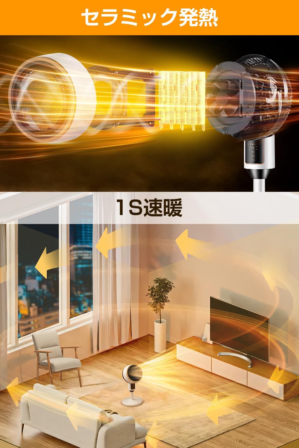 3D首振り サーキュレーター式電気ファンヒーター 速暖 大風量 3種の送風モード 立体送風 セラミックファンヒーター