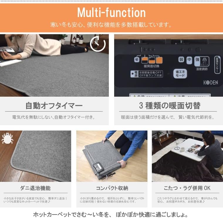 8時間自動オフ 省エネ 3面切り替え 16折収納 マイコン制御 コンパクト収納 電気カーペット