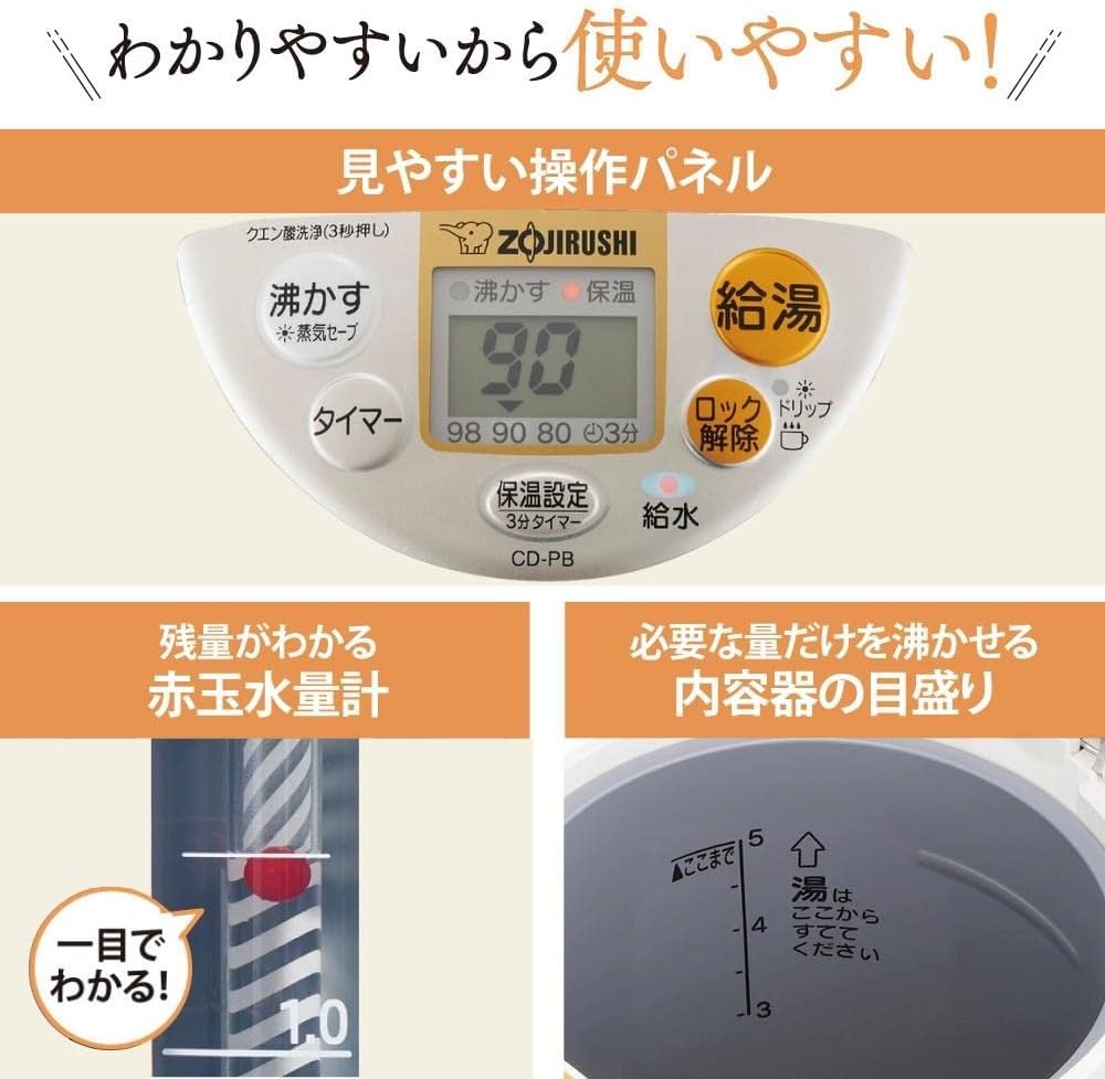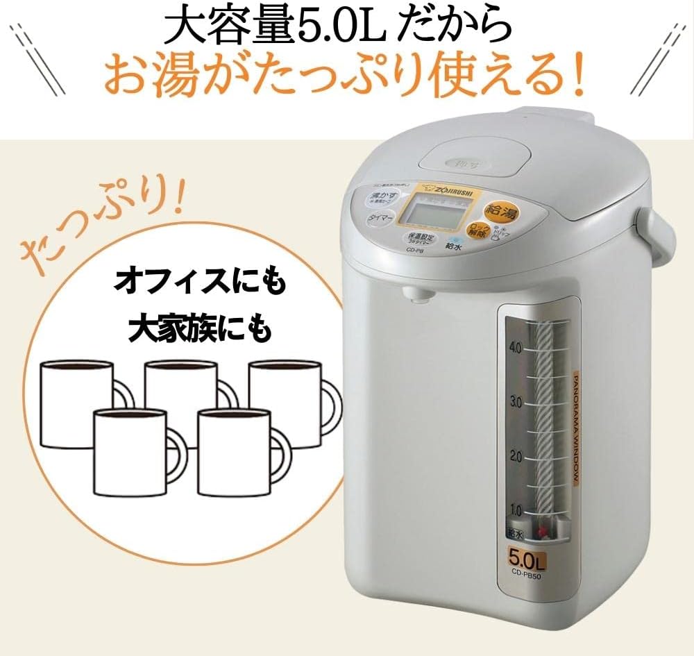 電気ポット 大容量 5.0L 標準タイプ 3段階保温設定 タイマー機能 省エネ設計