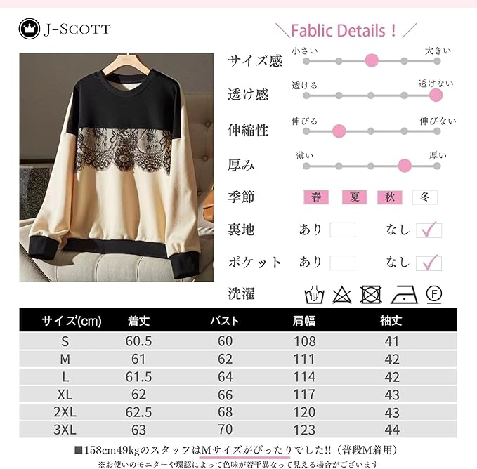 ゆったり バイカラー プルオーバー 10分袖 裏地無し
