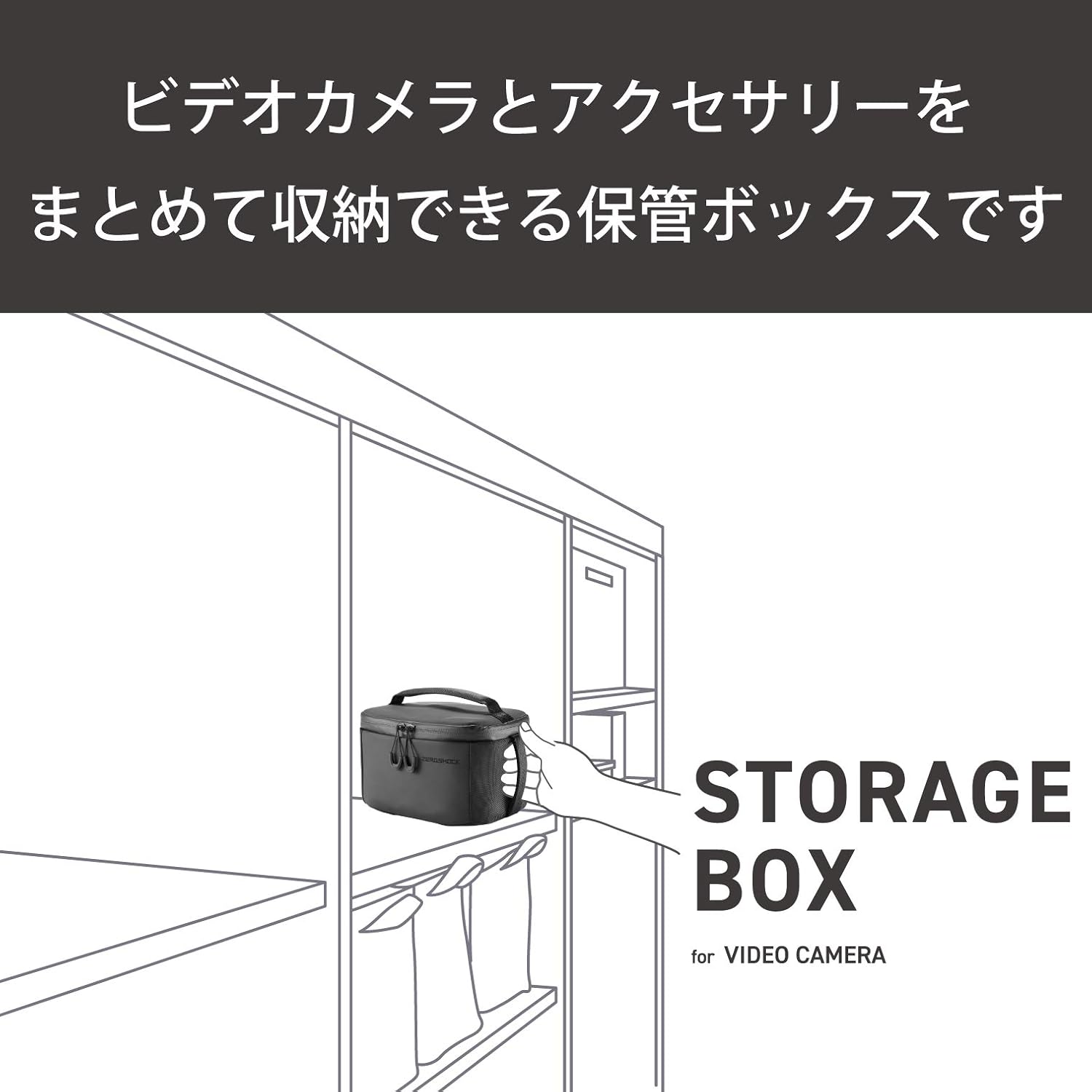 ビデオカメラとアクセサリーをまとめて収納できる保管ボックスです。