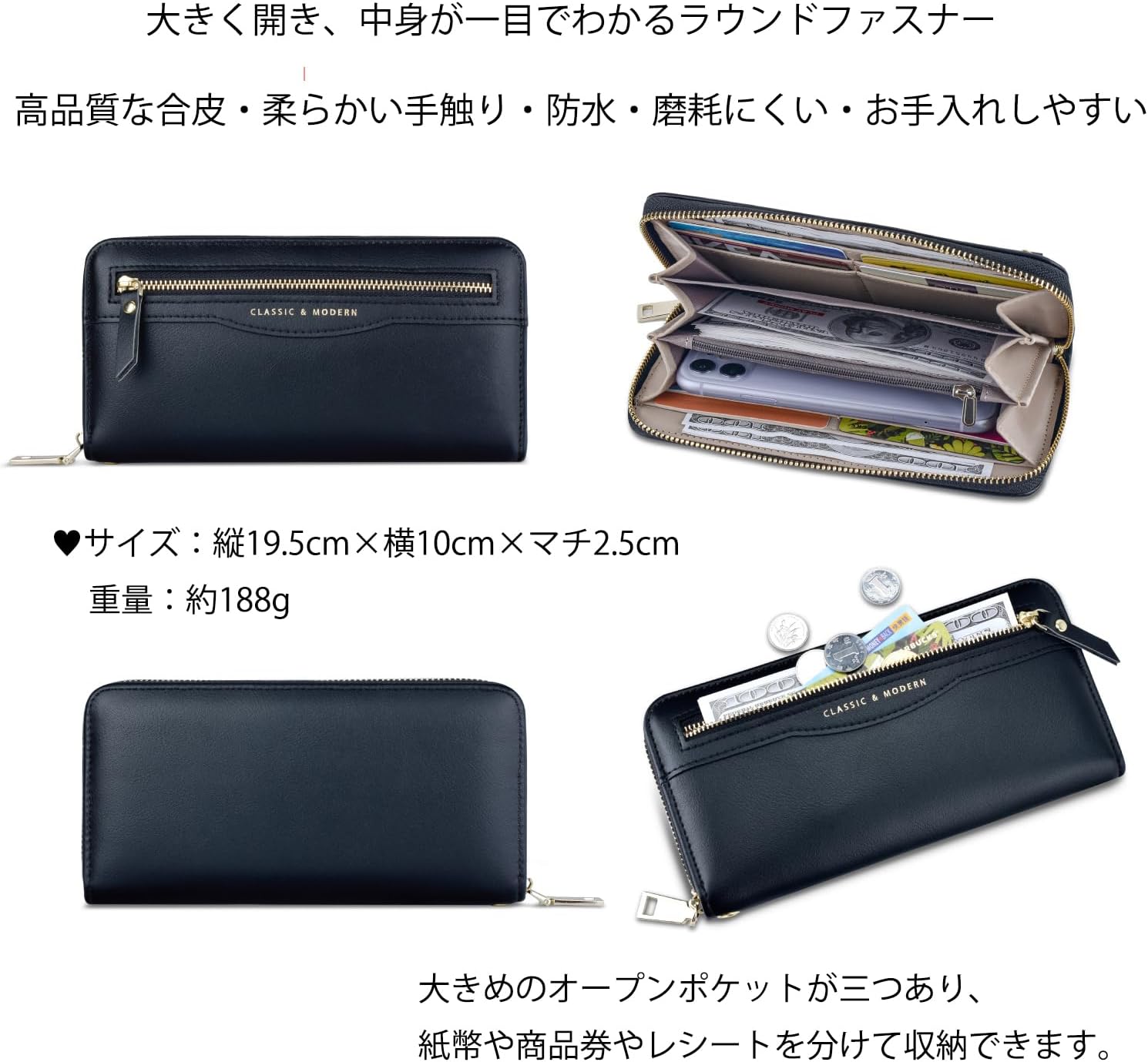 レディース 財布 ラウンドファスナー ロングウォレット 大容量