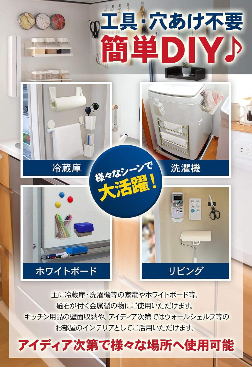 磁石 【インテリアのプロ監修】 超強力 マグネットテープ マグネット シート 両面 テープ 10 cm × 10 cm