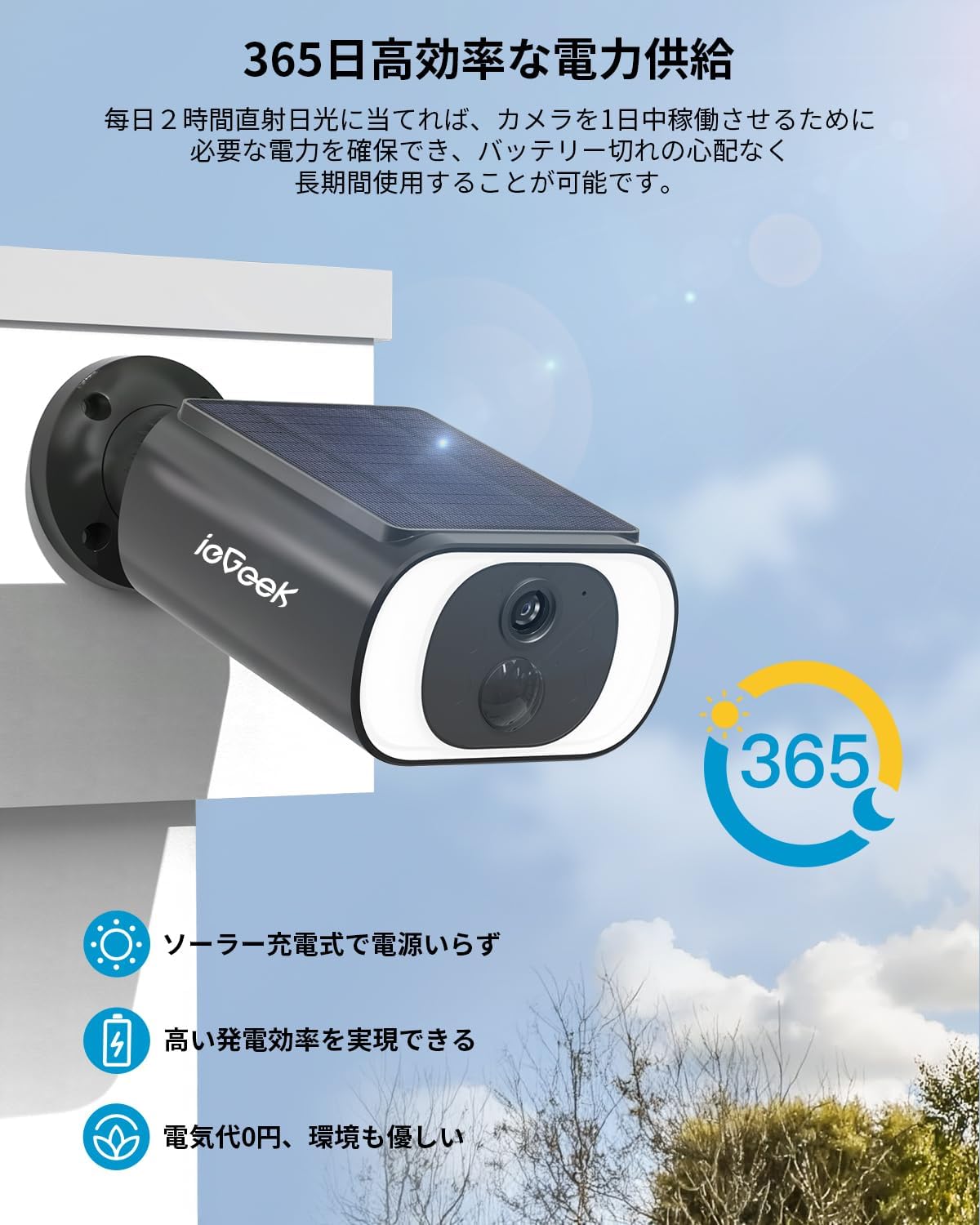 【 2025 ソーラーパネル一体型・高効率充電】 ieGeek 防犯カメラ