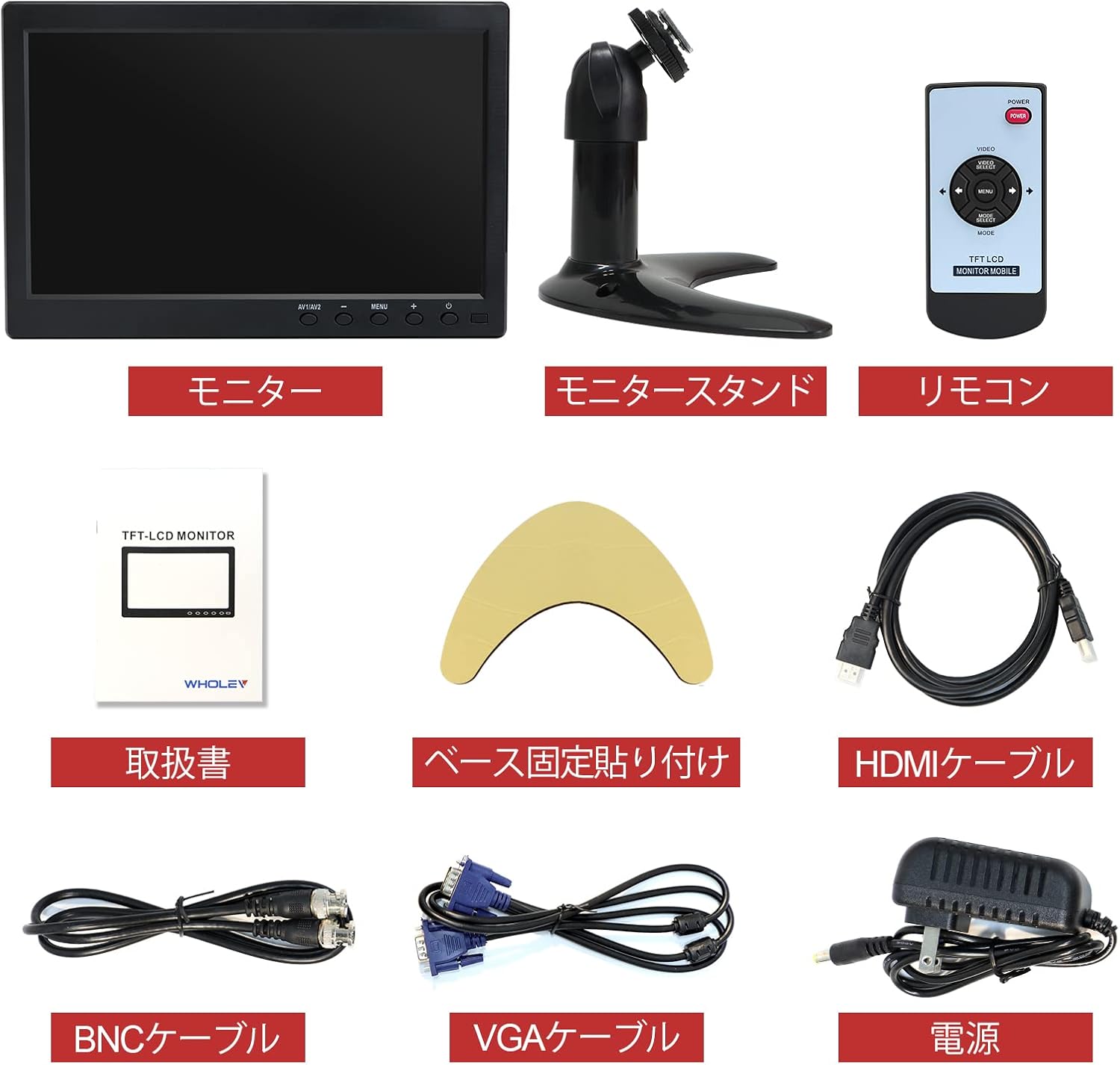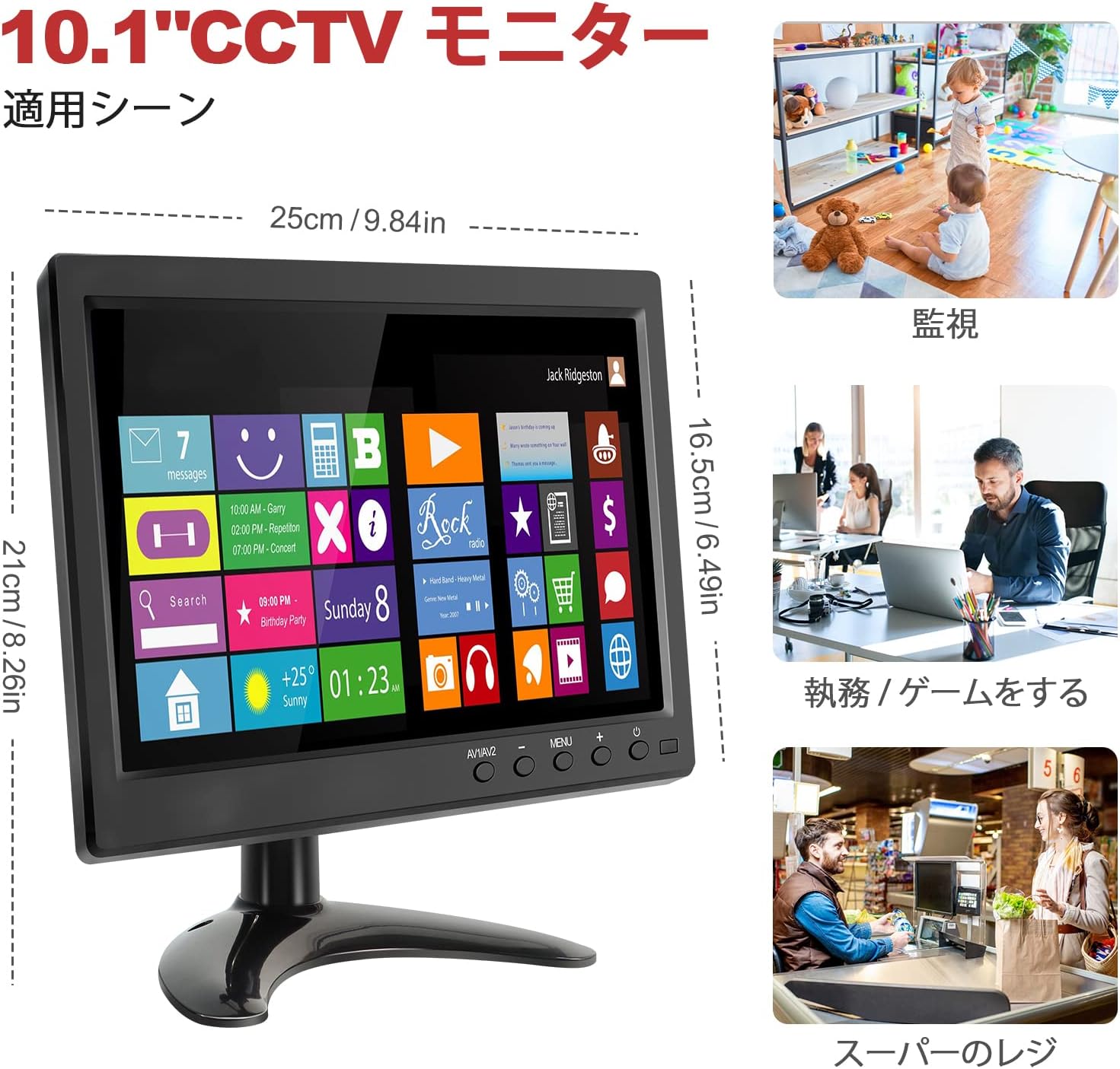 ディスプレイ CCTVモニター1024 x 600 FHD、VGA/HDMI/BNC/AV/USB入力/内蔵スピーカー/178°広角/VESA対応