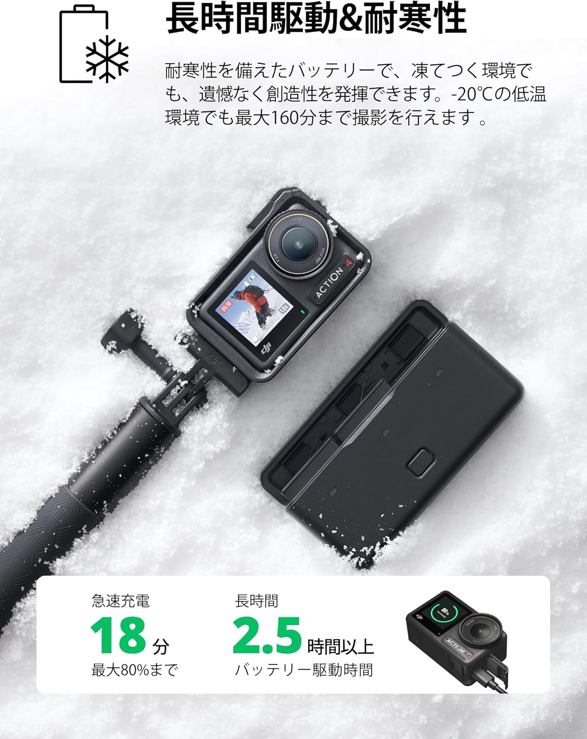 スタンダードコンボ 4K/120fps対応 防水アクションカメラ 1/1.3インチセンサー搭載 驚きの低照度性能 10-bit & D-Log M カラーパフォーマンス 長時間駆動の1770 mAhバッテリー 【国内正規品】