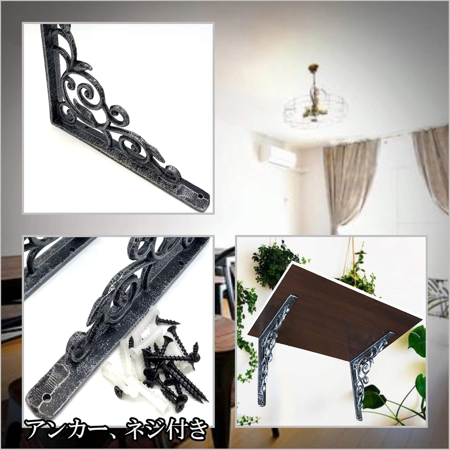 棚受け金具 アンティーク インテリア diy 646 (シルバー)