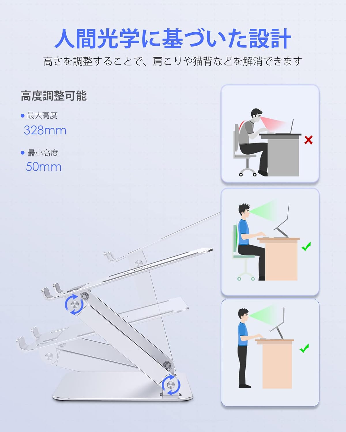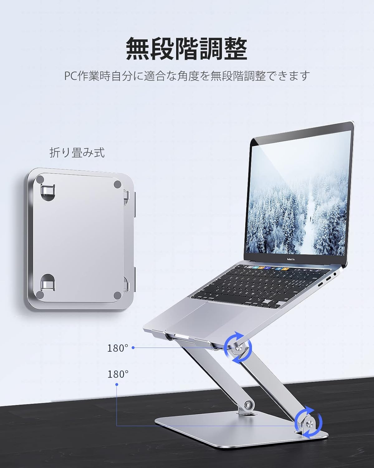 高さ・角度調節可能 折りたたみ式 16インチまで対応 省スペース 滑り止め アルミニウム製