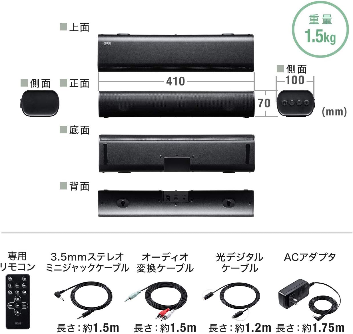 サンワダイレクト サウンドバー 50W