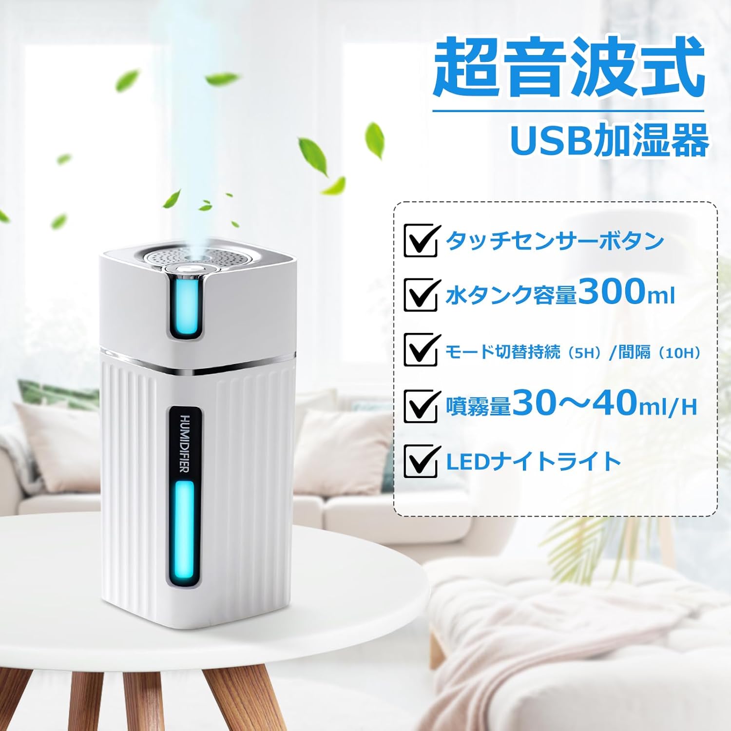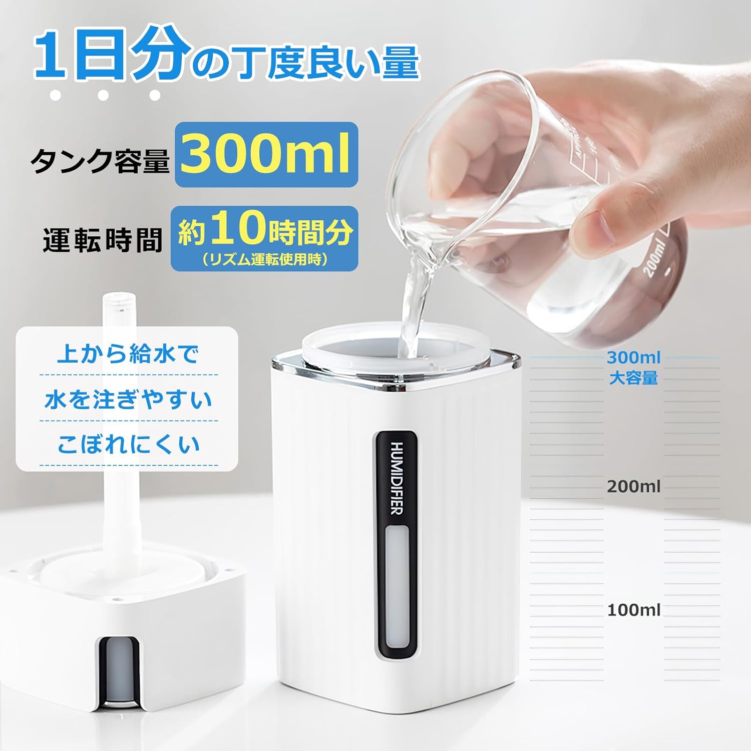 USB給電式 300ml コードレス加湿器 25dB静音 ARZER 卓上加湿器