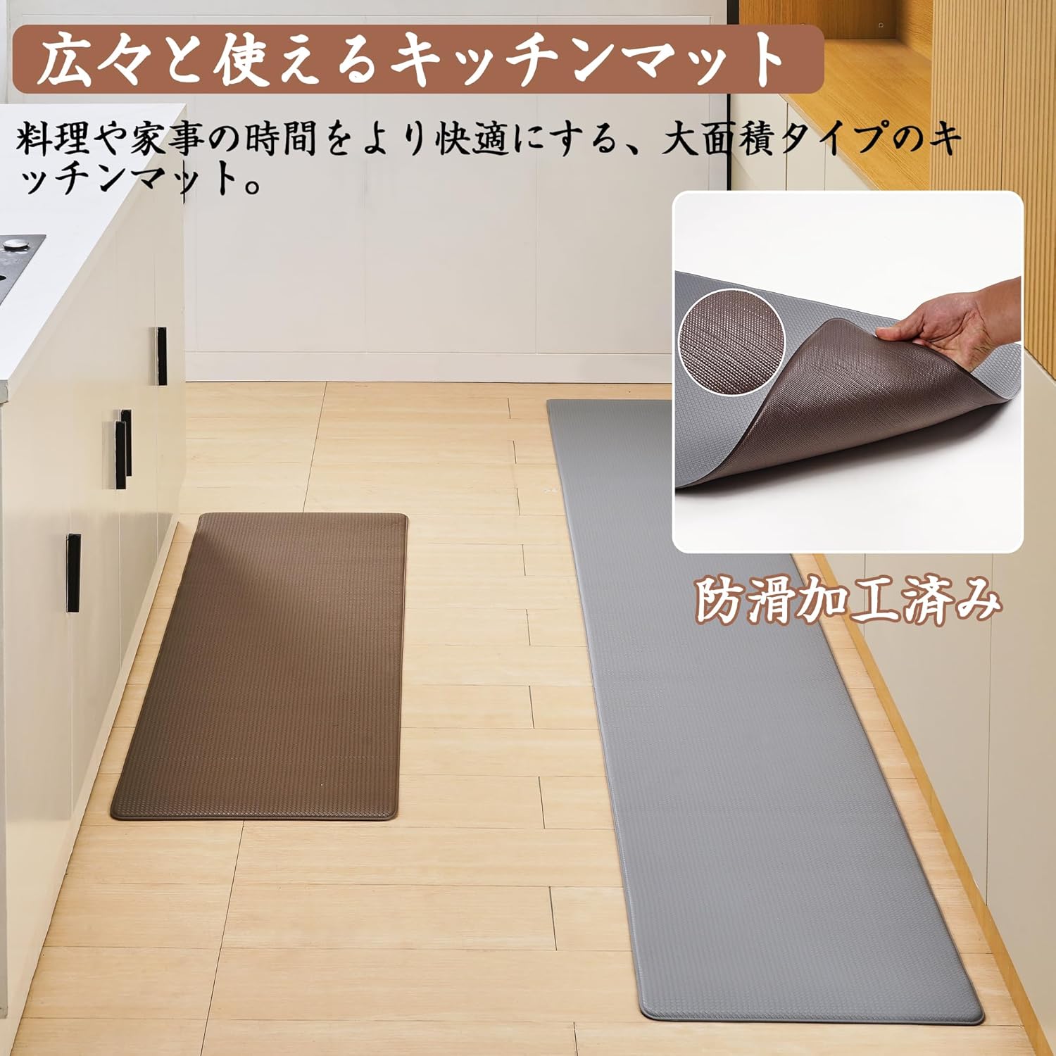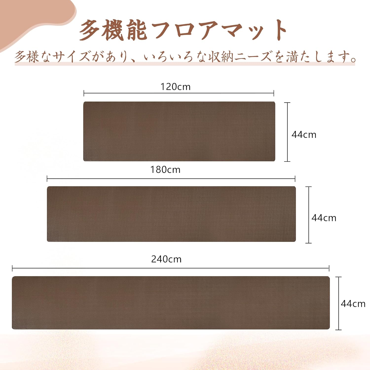 幅44X奥行240cm 8mm厚 拭ける 室外 玄関マット 泥落とし 台所 吸音 カーペット フロア 滑り止め PVC お手入れ簡単 玄関マット 無地 床暖房対応 転倒防止 床保護 ブラウン