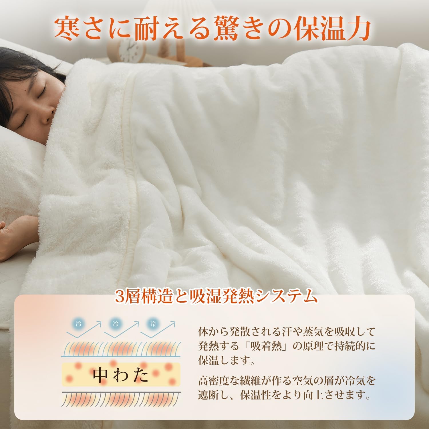 厚手 毛布 クイーン 冬用 あったか 中綿入り 襟付き ブランケット フランネル 三層構造 吸湿発熱 もうふ 保温 軽量 ふわとろ 掛け毛布 洗える 毛抜けない 静電気防止 暖かい ボリュームタイプ 合わせ毛布 アイボリー 200X220cm