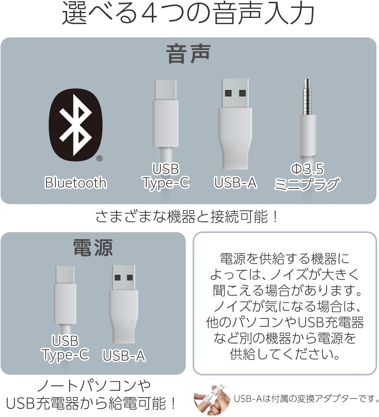 USB給電 高出力 usb C/USB-A/Bluetooth/3.5mmミニプラグ接続