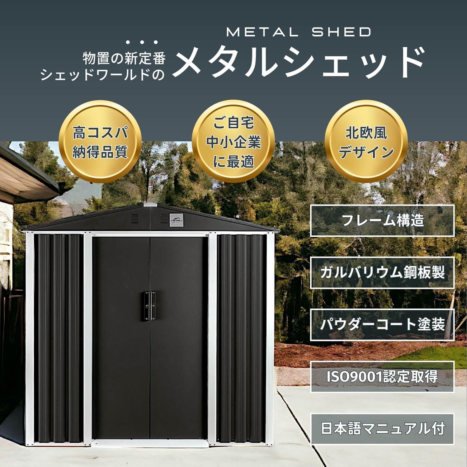 屋外 大型 倉庫 おしゃれ メタルシェッド 6x4フィート ダークグレー (引き戸)