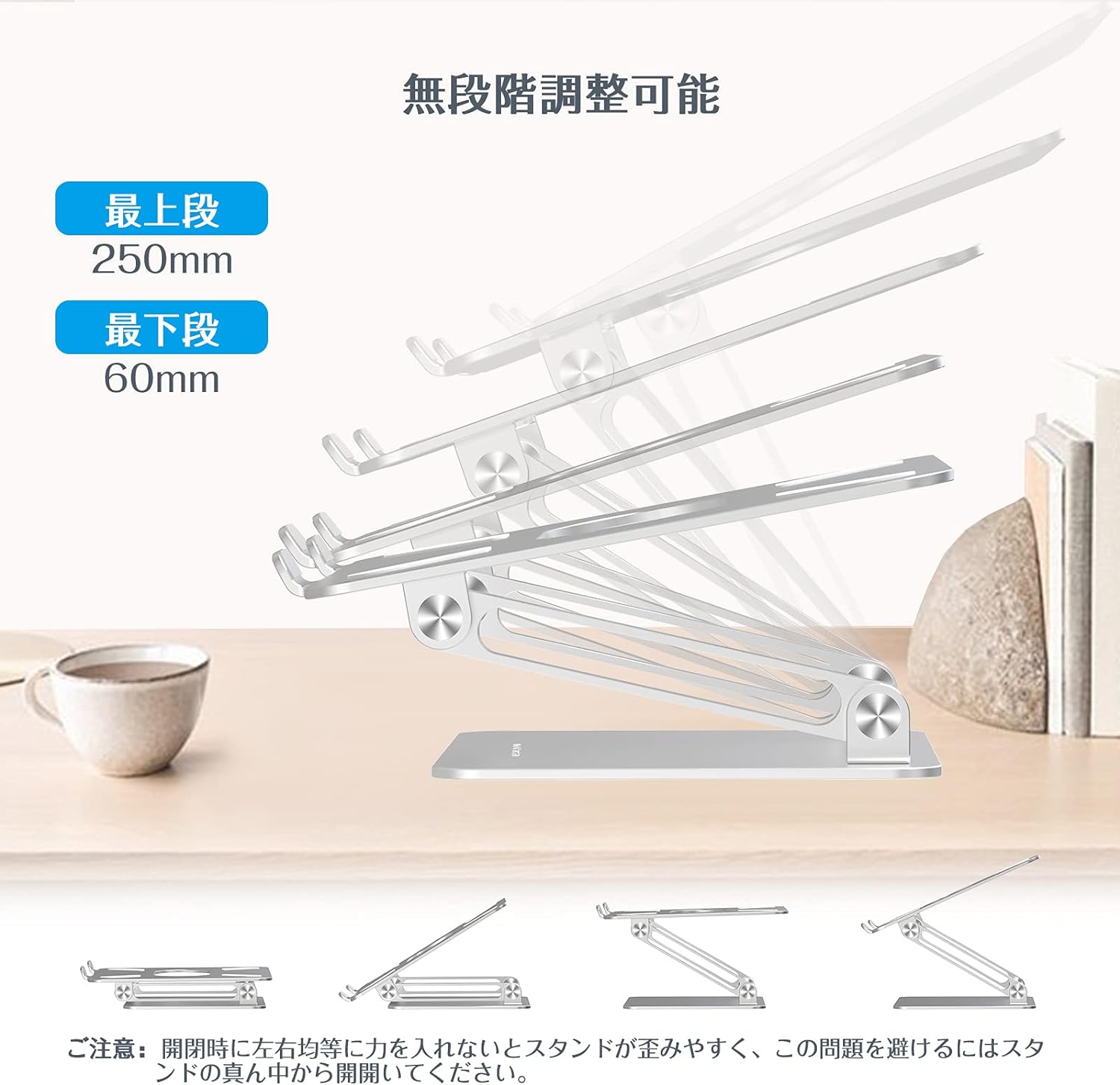 スタンド タブレット 無段階高さ/角度調整可能 姿勢改善 腰痛/猫背解消 安定性 折りたたみ式