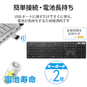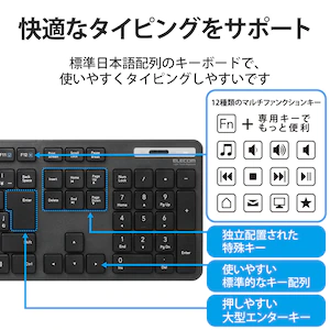 エレコム 無線キーボード 薄型 メンブレン式 抗菌 フルサイズ(ブラック) TK-FDM110TKBK