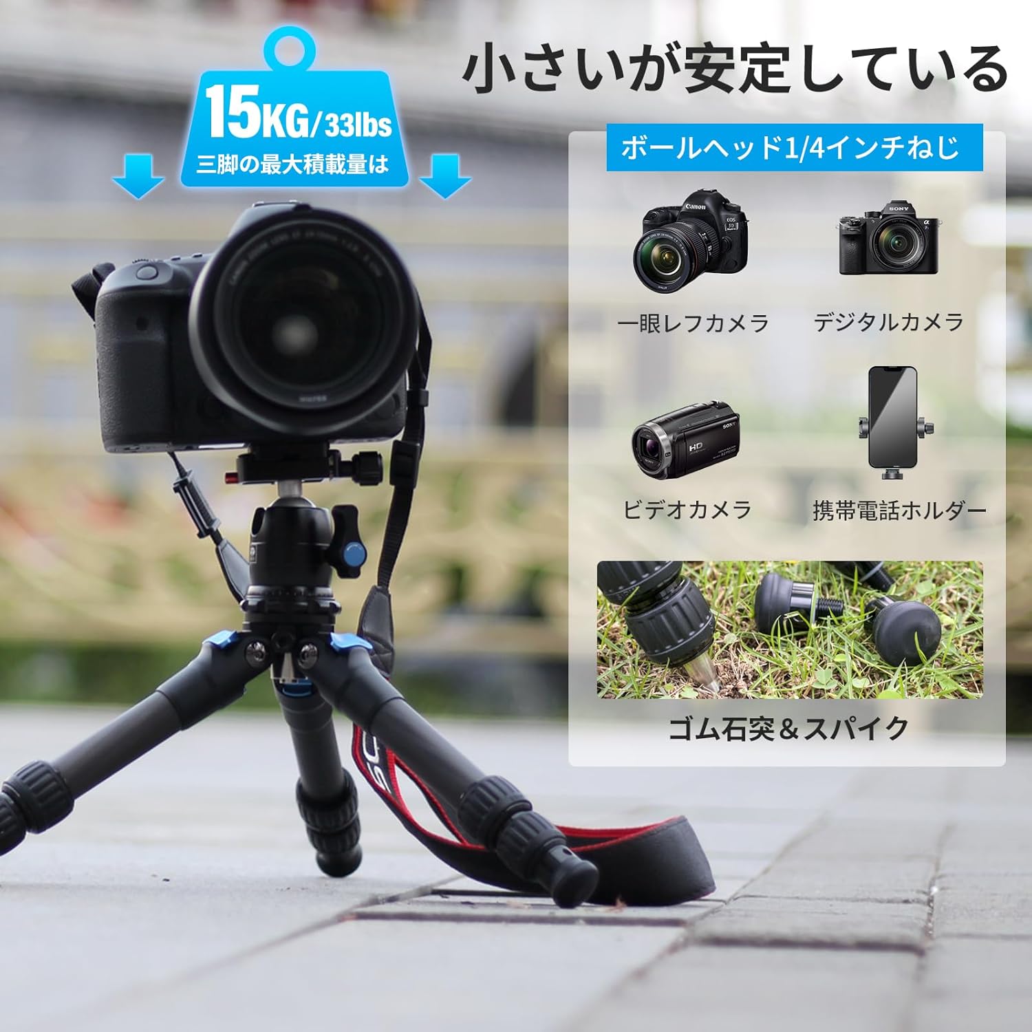 スマホ/カメラ/ビデオ/一眼レフ/望遠レンズ カーボンファイバー 3段伸縮 3WAY雲台