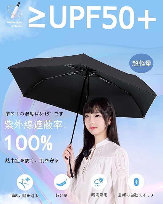 ワンタッチ自動開閉 パラソル 晴雨兼用傘 熱中症対策