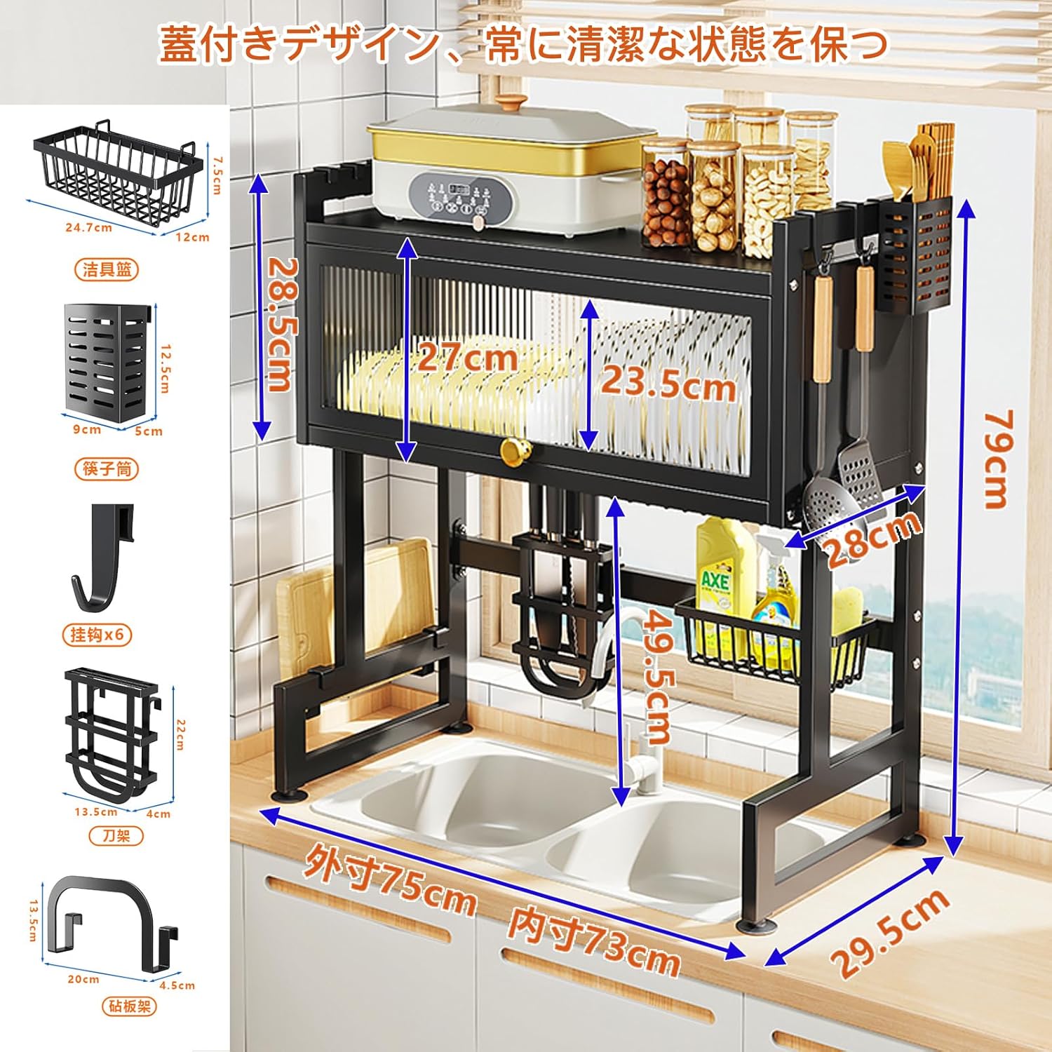 SVOHZAV シンク上 水切りラック 蓋付き
