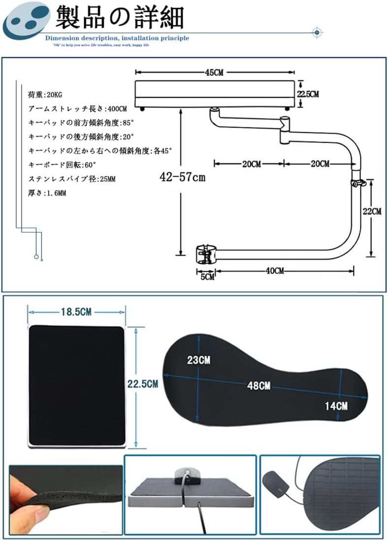 キーボードマウススタンド キーボードスタンド ステンレス 折りたたみ pcキーボードスタンド ファン付き