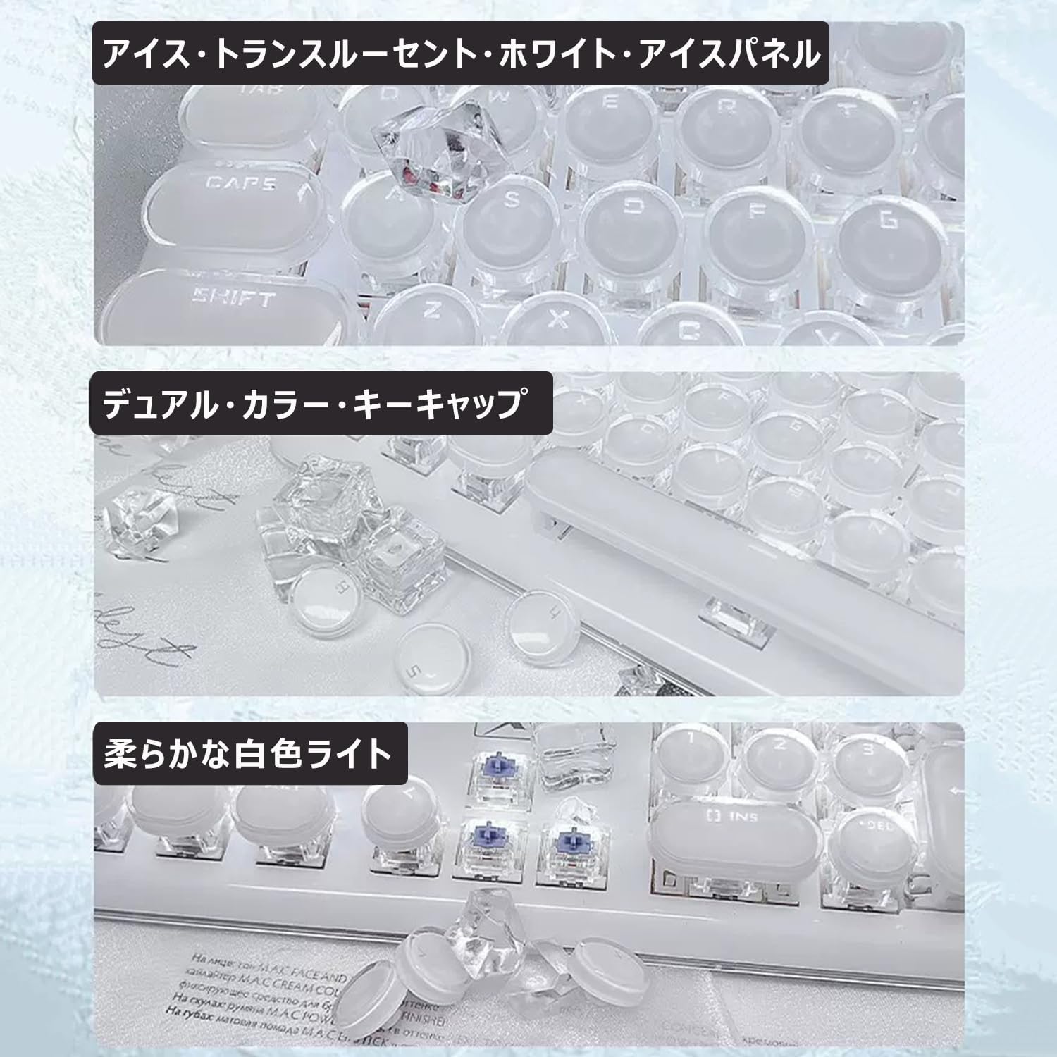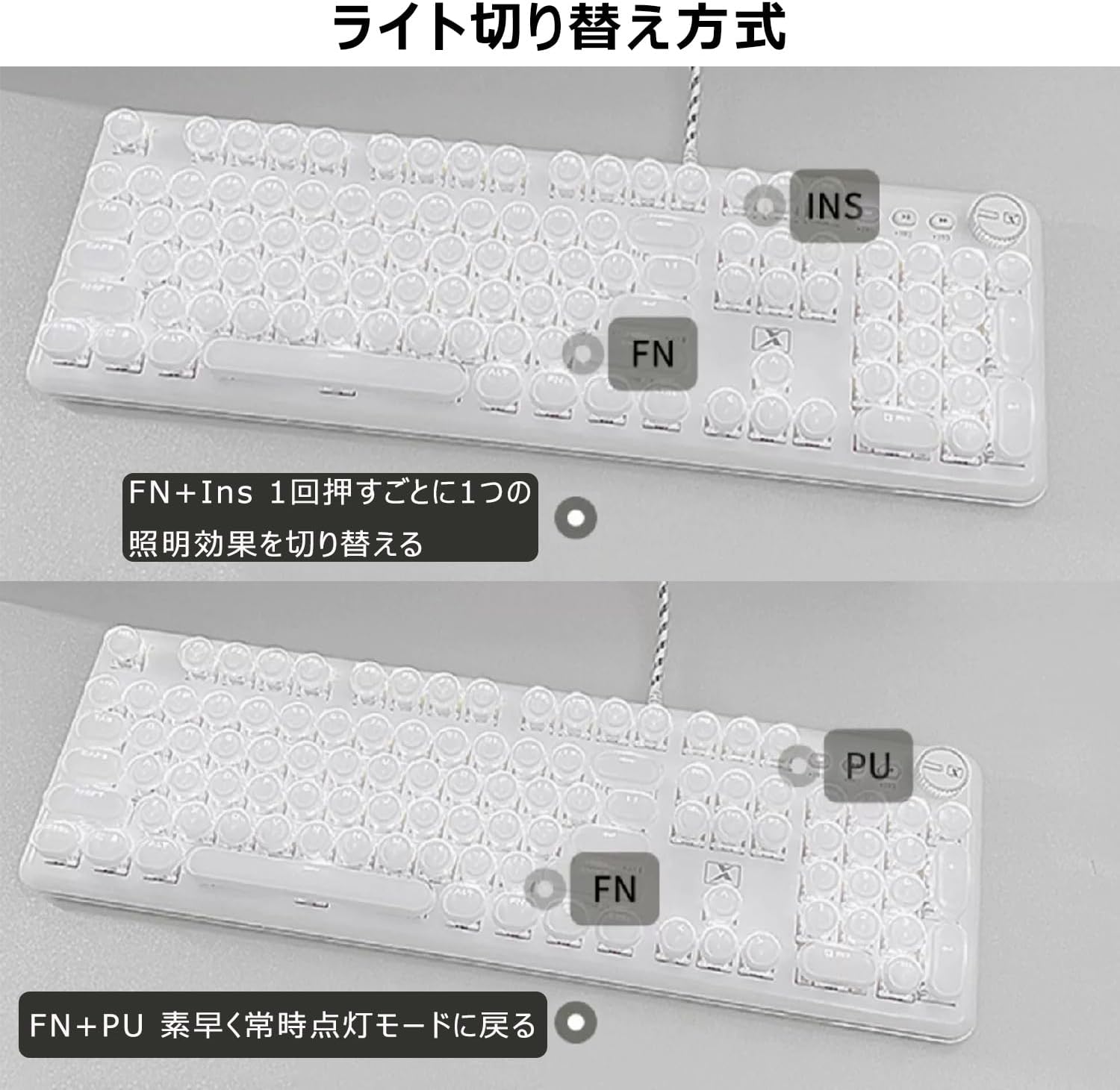 104キー タイプライター風キーボード 透明キーキャップ アンチゴースト RGBバックライト付き