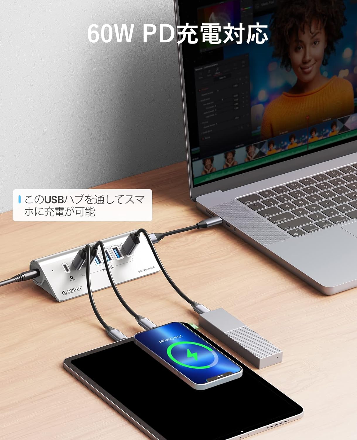 60WPD充電 10Gbps高速転送 アダプタ付き セパワー/バスパワー両対応 50cmケーブルと変換アダプタ付き USB C/USB Aデバイス両対応