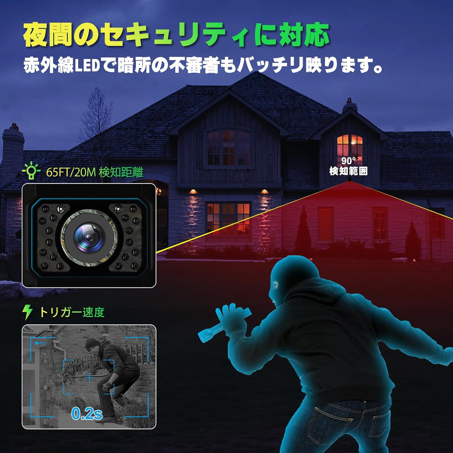 トレイルカメラ ソーラーパネル 4800万画素 1080P 小型 屋外 野外 乾電池不要