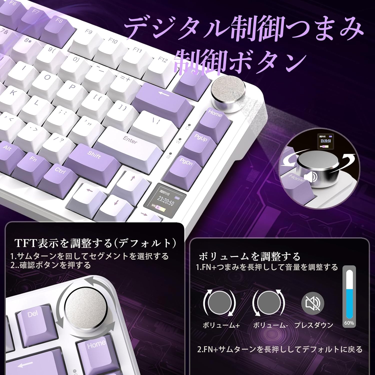 ディスプレイ付き ブルーベリー軸 ホットスワップ可能 ワイヤレス2.4G 無線bluetooth5.0 USB有線