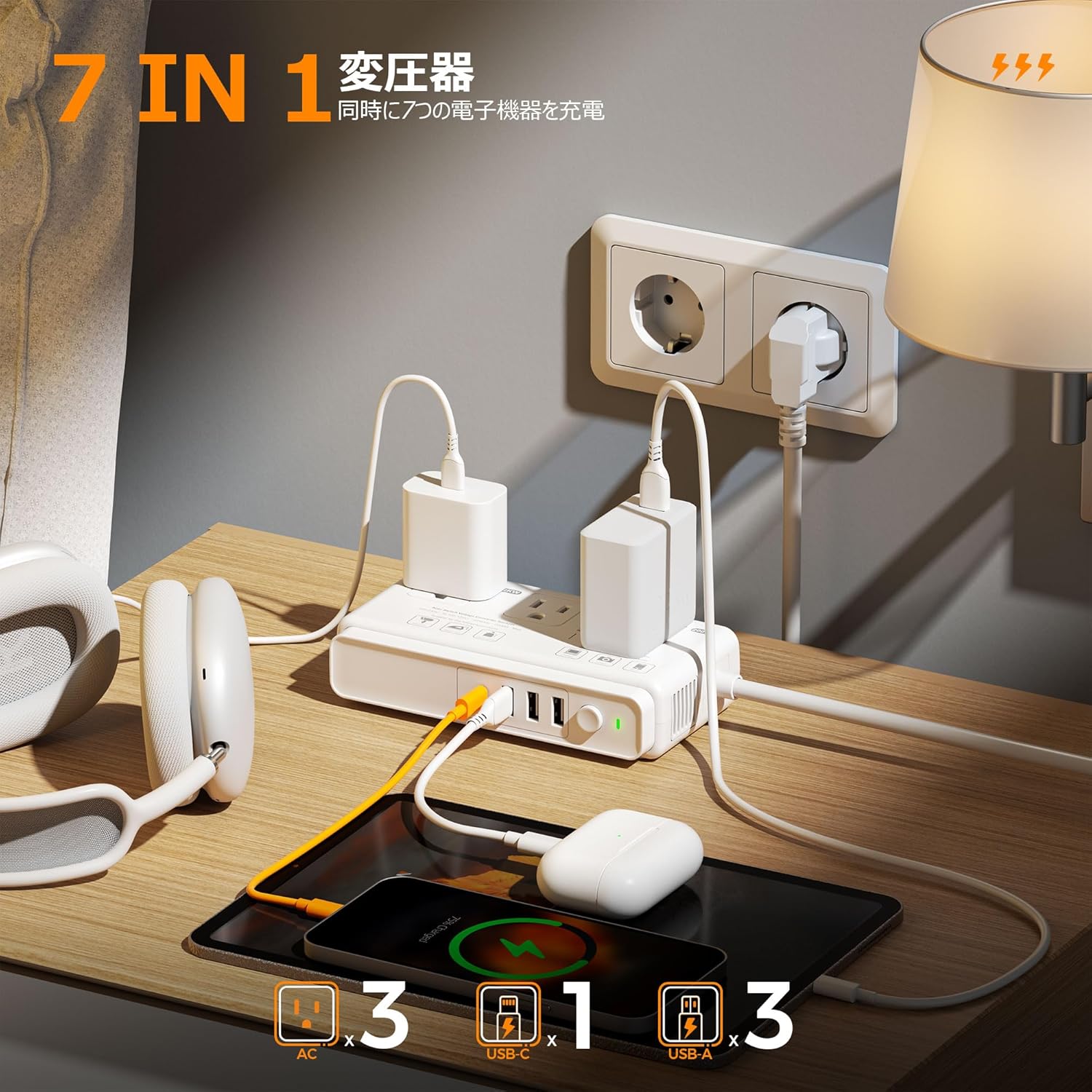 プラグ延長コード付き 海外 コンセント 変換プラグ C BF O Lタイプ付き 全世界対応 海外変圧 3USB-A 1USB-C