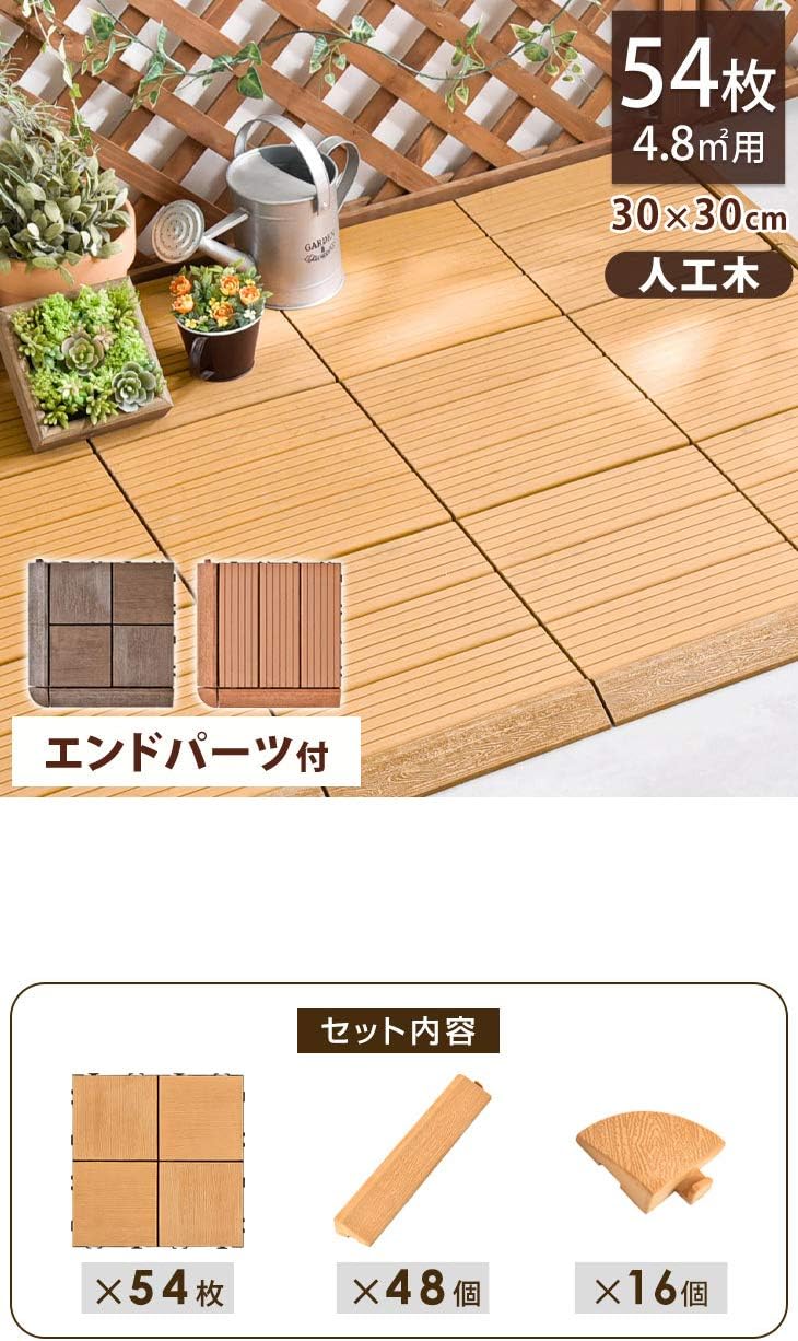 正方形 30×30cm ジョイント式 人工木 タイル ガーデン グレー
