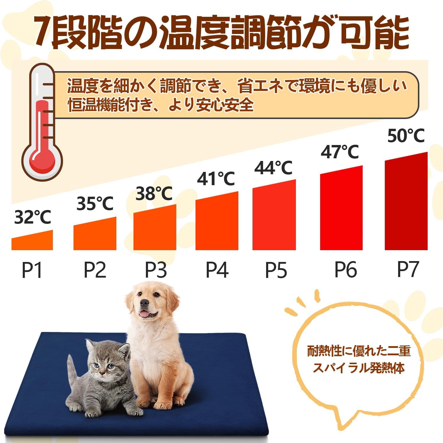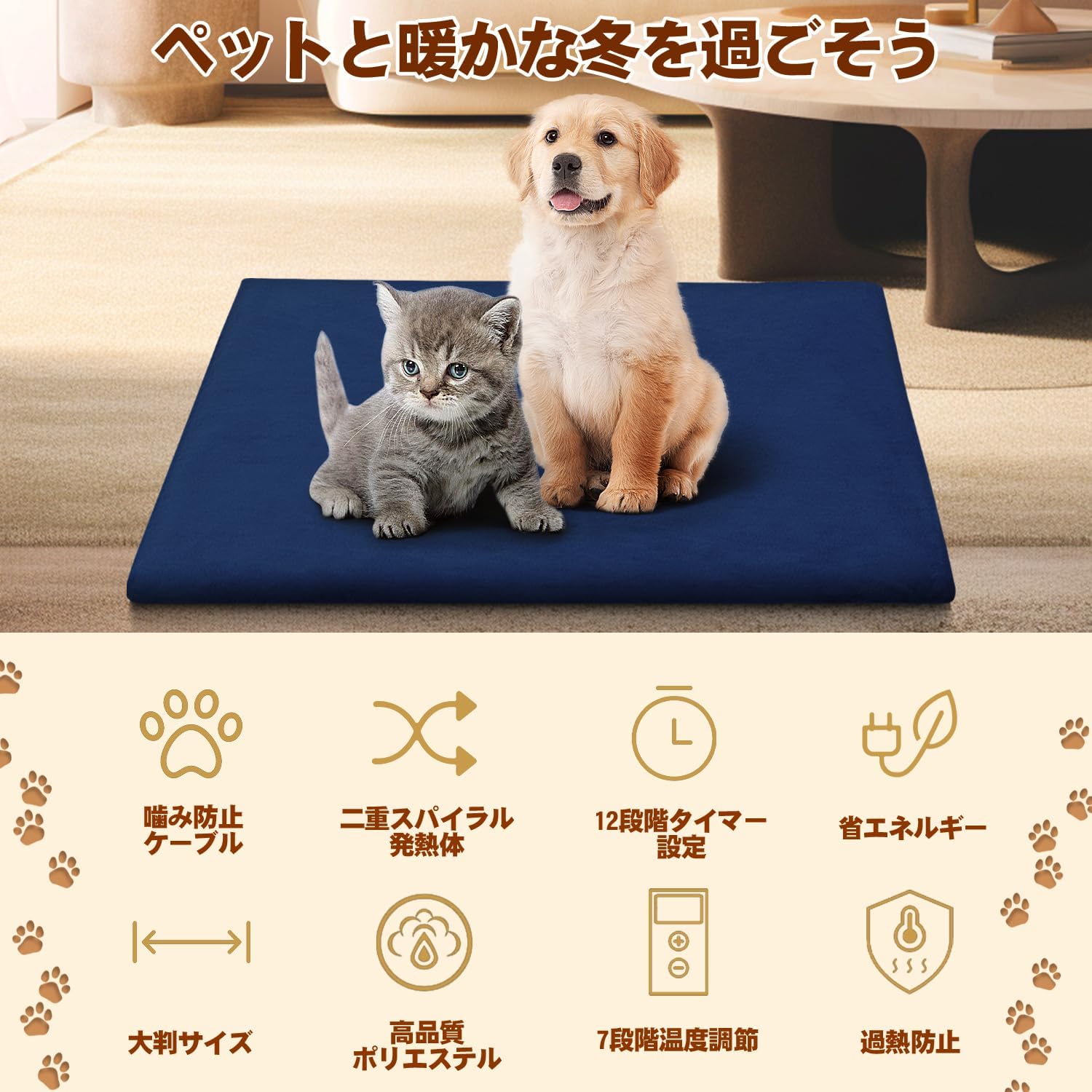 12段階タイマー設定 7段階温度調節 噛み防止ケーブル 防水 電気マット 犬 猫 防寒対策 暖房器具 過熱防止