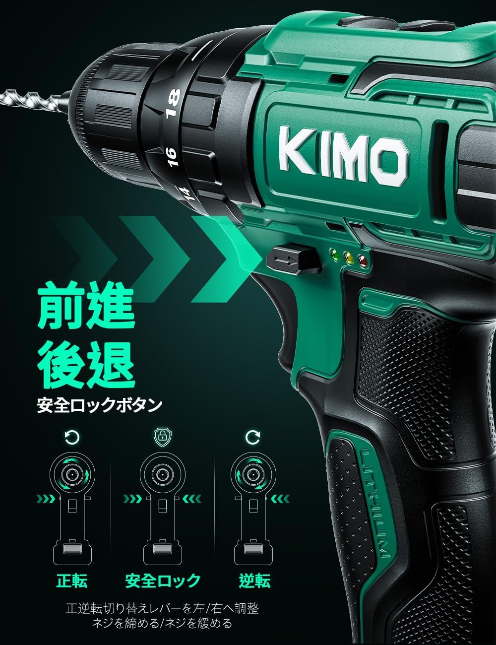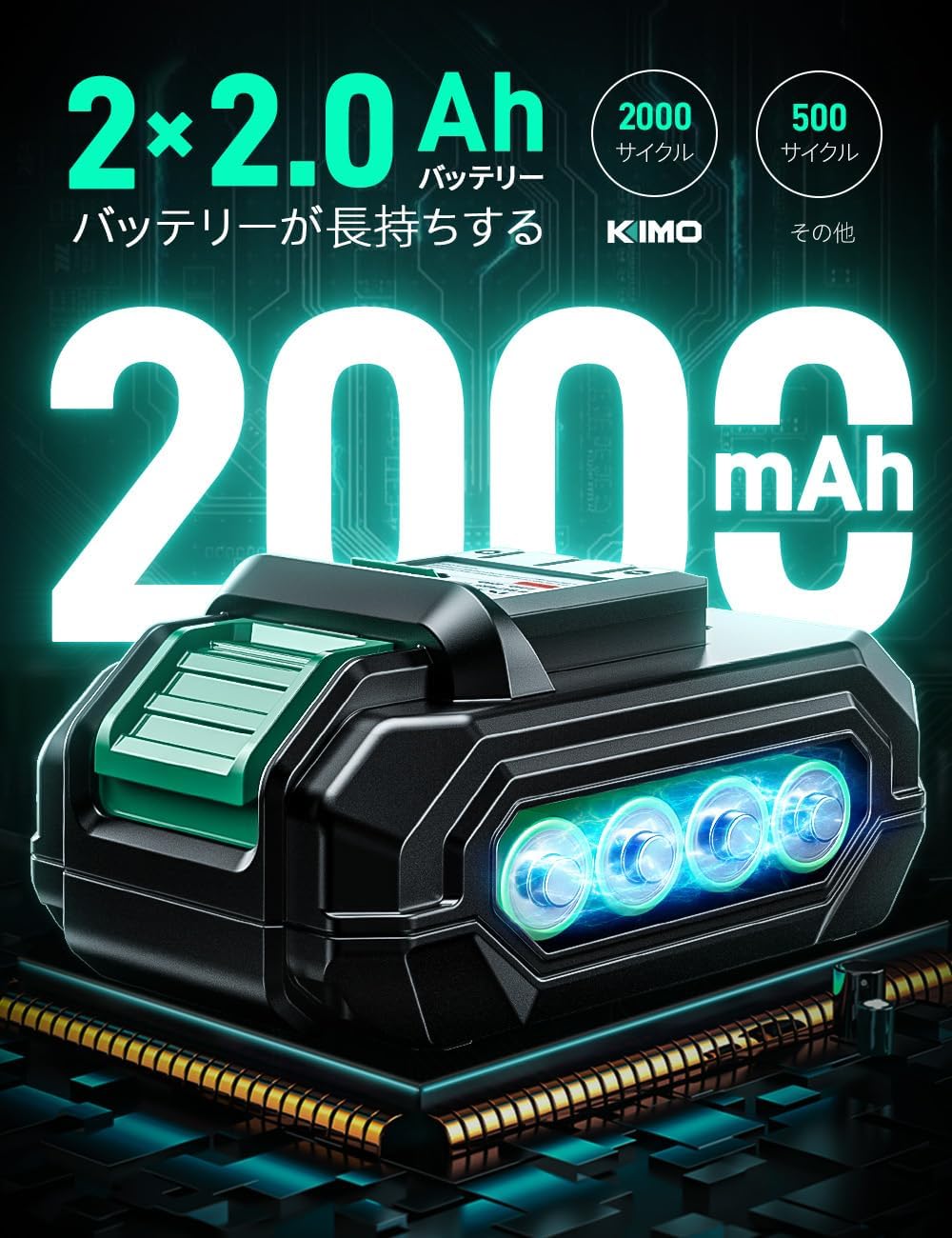 【2.0Ahバッテリー2個付き】KIMO ドリルドライバー