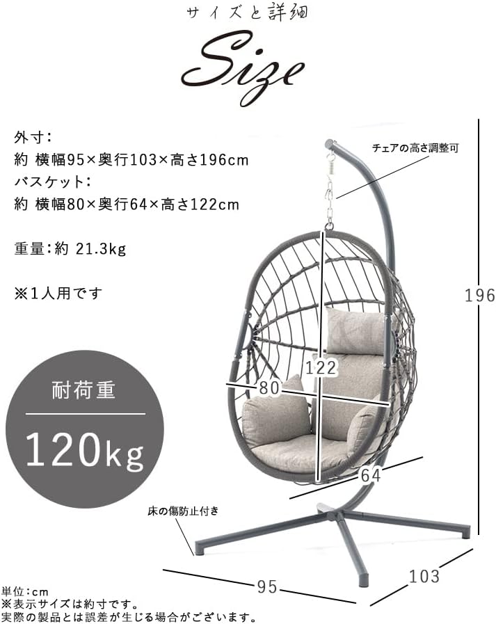 ハンギングチェア 1人掛け スウィングチェア 屋内 屋外